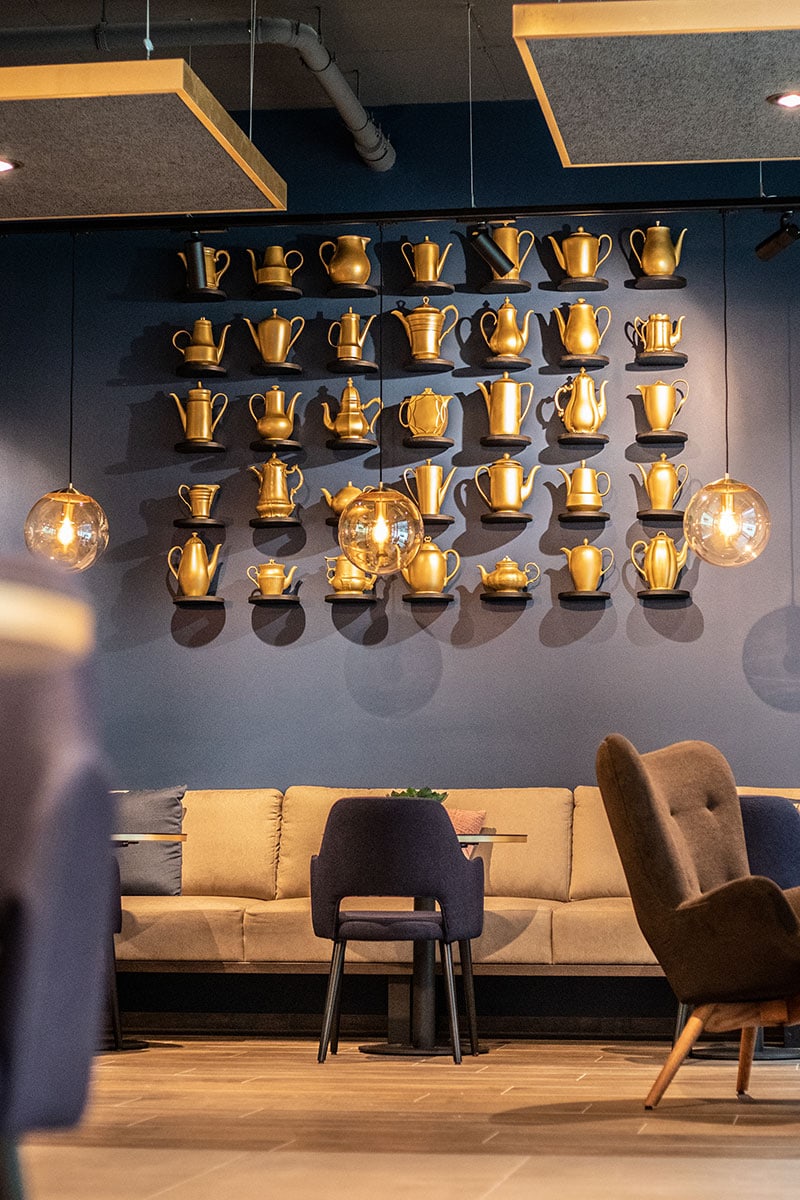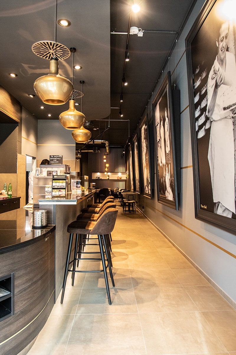 Den Gast empfängt eine Wohlfühlatmosphäre pur durch ein dunkles Erscheinungsbild mit goldenen Akzenten, eindrucksvollen Lichteffekten und verschiedenen, einladenden Sitzbereichen. Highlights des Ambientes sind eine Bildergalerie mit 2,50 m hohen schwarzweiß Aufnahmen und ein 11 qm messendes Leuchtbild mit Fresken-Motiv. Wieder einmal konnte die Projektschmiede alle Wünsche und Anforderungen – von der Planung, dem Design, der Handwerker – und Baukoordination bis zu den jeweiligen Abnahmen – zur vollsten Zufriedenheit der Familie Mauel realisieren.