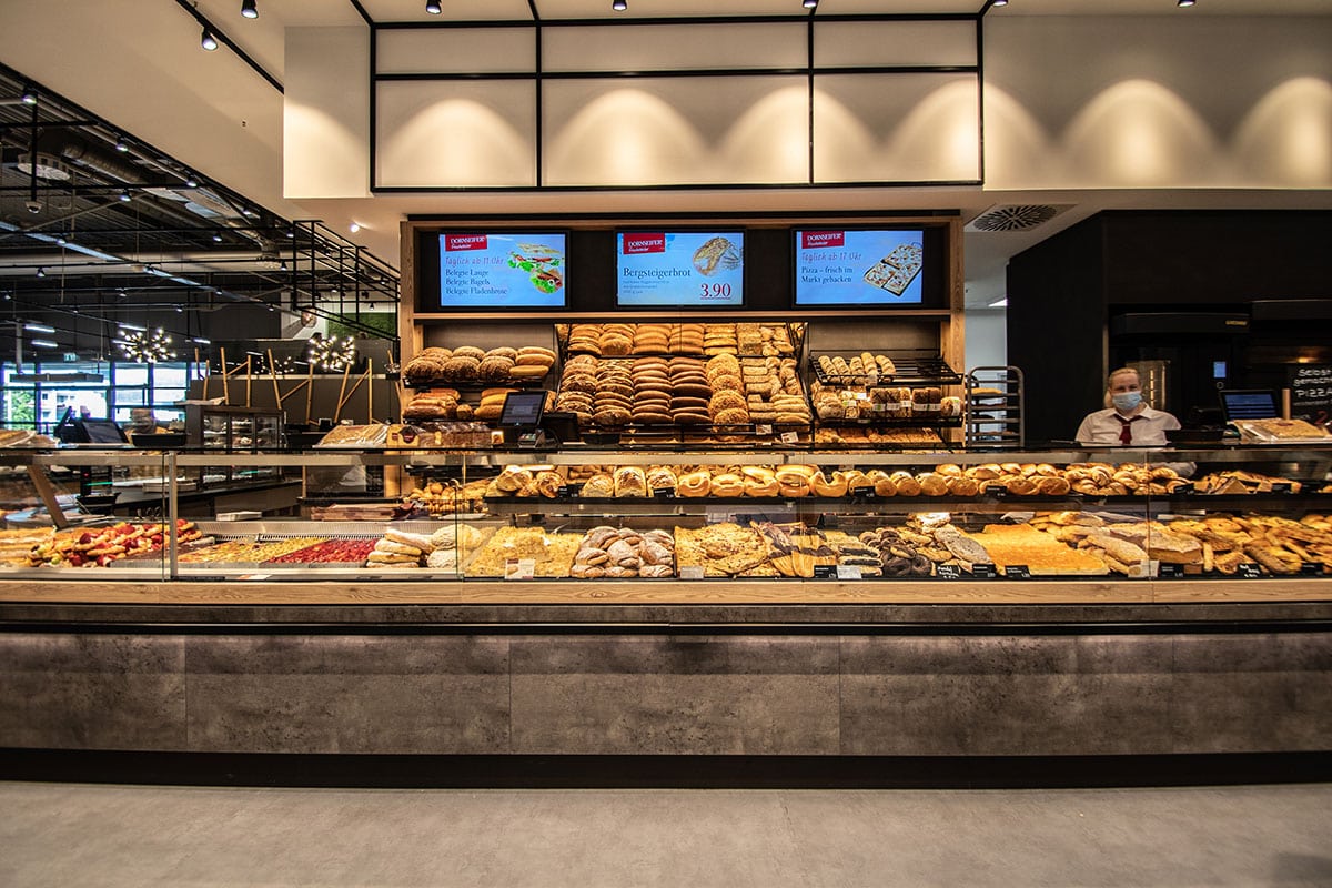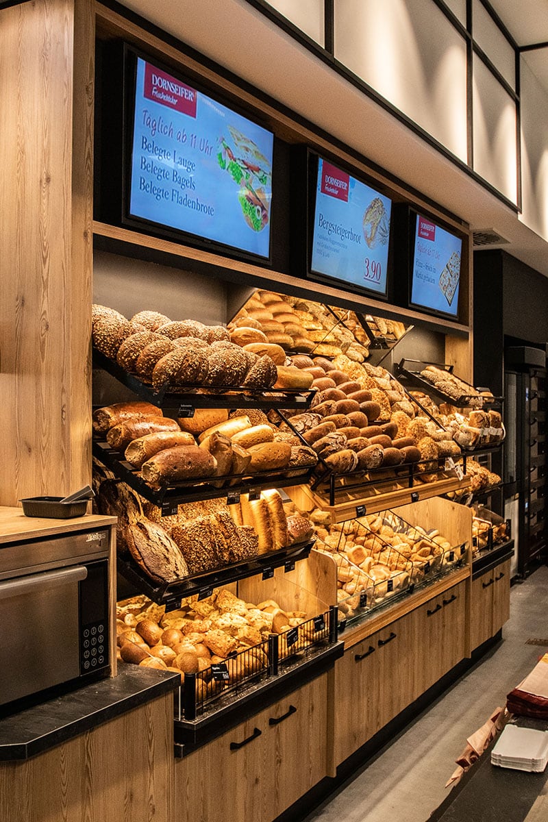 Der neugestaltete Frischemarkt der Firma Dornseifer in Siegen beeindruckt mit einem außergewöhnlichen Einrichtungskonzept und setzt neue Maßstäbe in Sachen „verkaufsstarke Warenpräsentation.“ In enger Zusammenarbeit mit Geschäftsführer Jörg Dornseifer und Dipl.-Ing. Innenarchitekt Bernhard Braun hat das „Kreativ-Duo“ Peter und Andre Walterscheid ein modernes Marktkonzept kreiert, dass die Kunden begeistert. Besonderer Fokus der Projektschmiede lag wie immer auf der Neugestaltung des Verzehrbereichs und Backshops. Hier dominiert die einzigartige Brotpräsentation, welche Brote und Brötchen hervorragend präsentiert und „…die von der Kasse darauf zulaufenden Kunden regelrecht anspringt“, so Andre Walterscheid.
